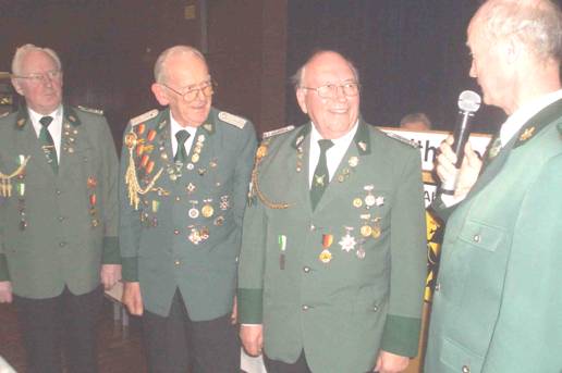 Im Verlauf der Versammlung überraschte der stellvertretende Vorsitzende des Schützenkreises Recklinghausen, Theo Hemmerde, die Seniorenaltersschützen mit einer Auszeichnung. Die drei Schützen mit insgesamt 250 Lebensjahren sind immer noch aktiv in einer Schießgruppe unseres Vereins. Sie nehmen heute noch an Vergleichskämpfen im Schützenkreis Recklinghausen teil
