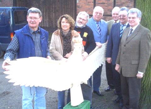 Hubert Brüggemann hat wieder einen tollen Schützenvogel für das kommende Fest geschnitzt. 2,22 Meter Spannweite, aus Fichte-Tanne-Holz geleimt, wird er den