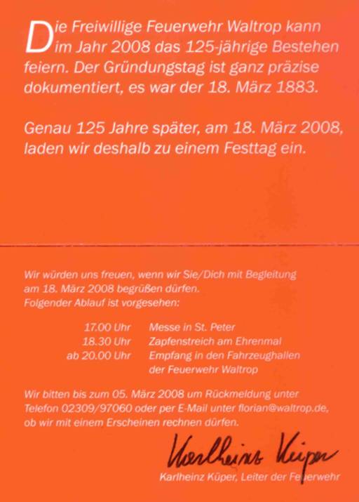 125 Jahre Freiw. Feuerwehr in Waltrop Liebe Feuerwehrkameraden,