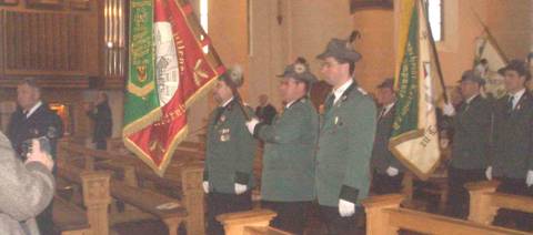 Die Fahnenoffiziere Heinz Drelmann, Jörg Oesmann und Jörg Trotzer waren für den BSV Waltrop mit der Schützenfahne in der St. Peter Kirche mit dabei.
