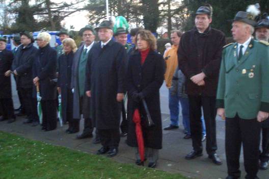 Königin Marlene, Willi Scheffers, Matthias Brüggemann, Klemens Messmann, Bernd Reers, Manfred Rettkowski und die Fahnenoffiziere vertraten den BSV Waltrop. Nach dem Zapfenstreich ging es geschlossen zur Feuerwehrwache und hier begann dann der offizielle und der weltliche Teil des Festaktes.