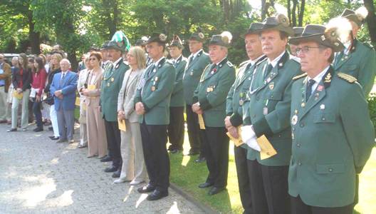 Königspaar mit Hofstaat und Schützen vor der Friedhofskapelle