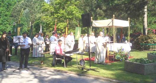 Fronleichnamsprozession und Pfarrfest St. Peter/ St. Marien bei strahlendem Sonnenschein