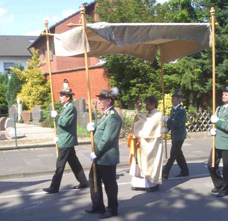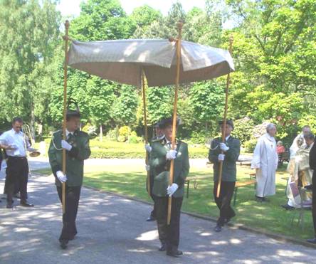 Die Schützen übernahmen die Aufgaben der früheren Ehrengarde und trugen den Baldachin während der Prozession