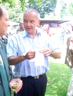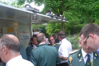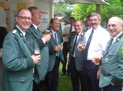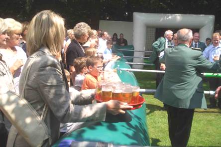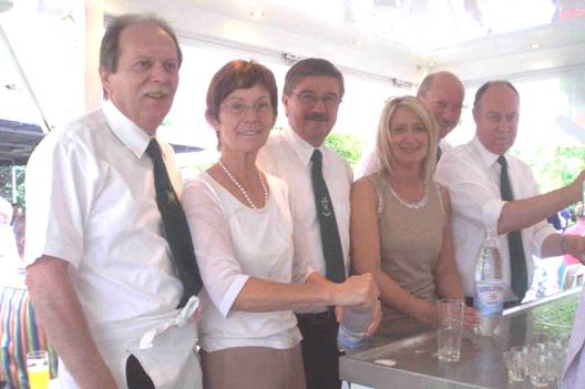 Im Pfarrgarten übernahmen die Schützen die erste Thekenschicht. Theo Wesselbaum, Monika und Manfred Müller, Gabi und Wolfgang Zielke, Bärbel und Burkhard Dröge, Sascha Müller und Manfred Rettkowski erfüllten alle Getränkewünsche sofort. Ob Cola, Fanta, Wasser, Bier, Krefelder, Alster, Pfläumchen oder Klarer mit allen Getränken wurden die Pfarrfestbesucher versorgt.
