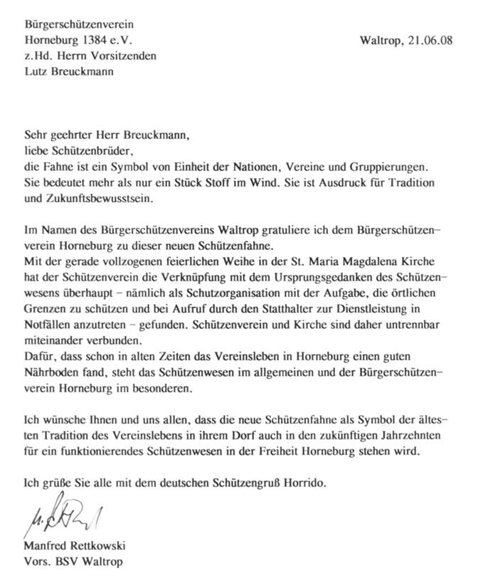 Zur Erinnerung an die Fahnenweihe 21.06.2008 BSV Horneburg 1384 e.V.