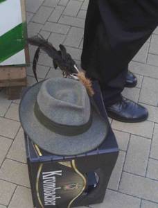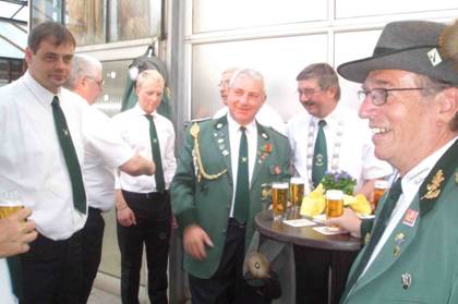 Endlich das Ziel erreicht. Thomas Stern, Gerd und Volker Wernikowski, Marvin Streck, Werner Bielefeld, Manfred Müller und Wolfgang Pick bezogen am Bierstand vor der Festhalle Quartier.