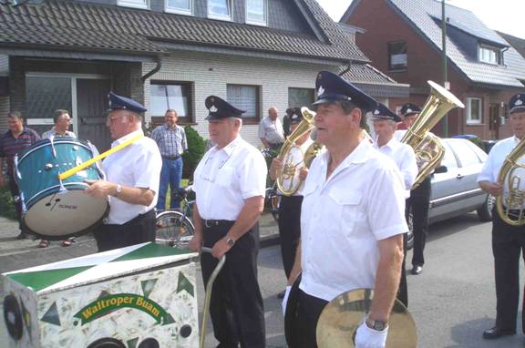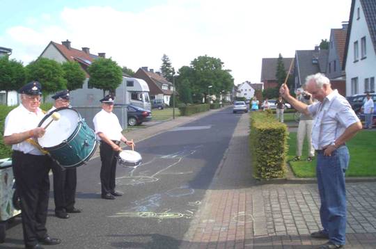 Die Schützen der I. Kompanie stellten ihre Instrumente zur Verfügung und Georg Bertling, Werner Bielefeld und Manfred Rettkowski halfen den Feuerwehrsenioren den Takt richtig zu schlagen.