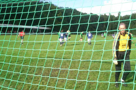 Der traurige Feuerwehrtorwart nach dem nicht gehaltenen Elfmeter