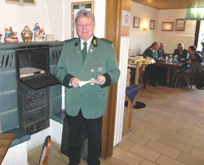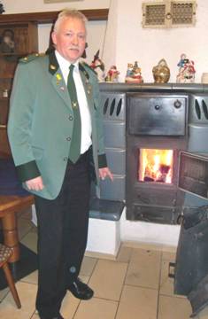 Vorsitzender Manfred Rettkowski vor dem Kamin in der Gaststätte