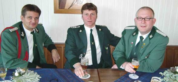 Adjutant Frank Wesselbaum, Wiesensprecher Bernd Goer und Fahnenoffizier Ludger Niessalla