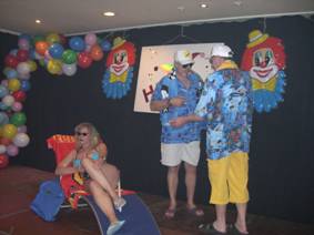 Es roch nach Zirkusluft. Nadine Heckenthaler wollte uns als Ballerina einen Seiltanz vorführen, wobei sie sich starke Männer auf die Bühne holte um das Seil zu spannen. Doch die Kraft der Männer reichte nur aus, um Wäsche aufzuhängen |