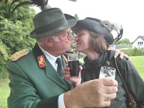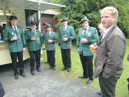 Schützenjackenanprobe, Pfarrer Franz-Josef Durkowiak, V. Kompanie und Pfarrer Clemens Schneider I. Kompanie, des BSV Waltrop. Man munkelt, dass sie als Königsanwärter 2010 in Waltrop hoch gehandelt werden? Die Königinnen stehen auch schon fest und zwar, Pfarrer Durkowiak – Inge Geismann und Pfarrer Schneider, Maria Hölscheidt.