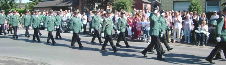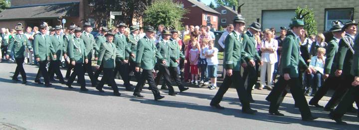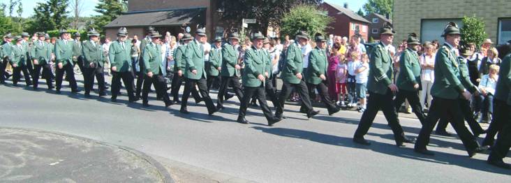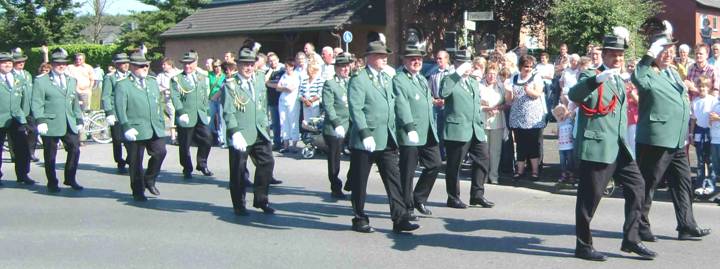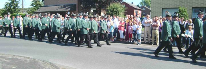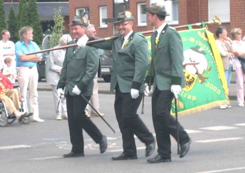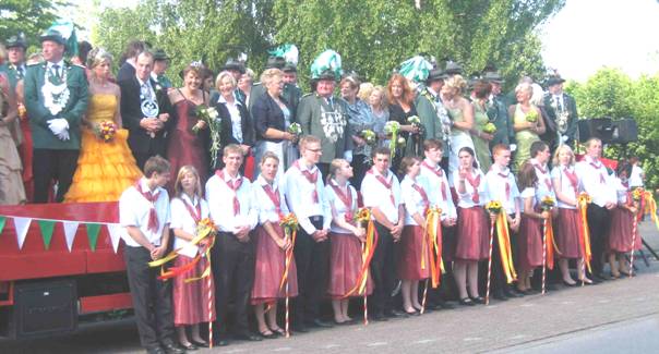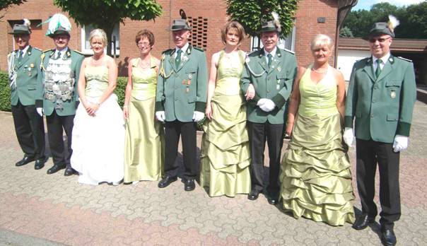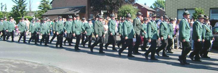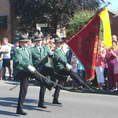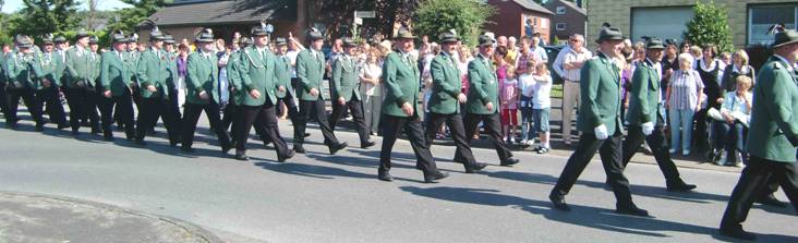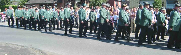 Die Schützen treten am Donnerstag, 11.06.2009 mit Königspaar, Hofstaat, Fahnenabordnung und Vorstand um 09:45 Uhr auf dem Schulhof der Babaraschule an.