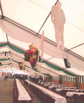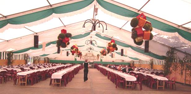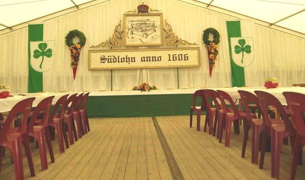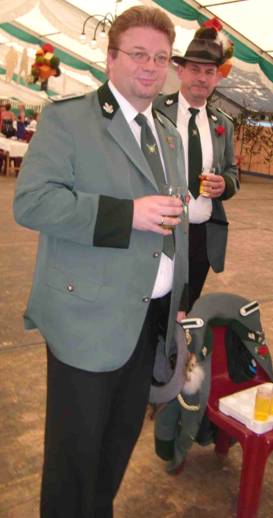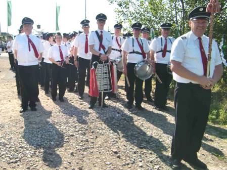 Um 15:30 Uhr begann der Festzug durch die Gemeinde. Gegen 18:00 Uhr waren wird wieder im Festzelt. Besonders ist der 3- malige Vorbeimarsch an den Königspaaren zu erwähnen. Unsere Fahnenoffiziere hatten Schwerstarbeit zu verrichten.