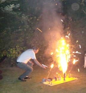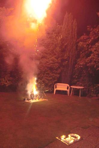 Sascha Müller zelebrierte das Feuerwerk gekonnt und alle Nachbarn auf dem Amselweg freuten sich mit Anneliese.