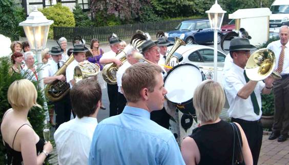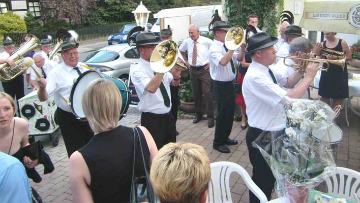 Werner, Schorsch, Wolfgang, Norbert, Burkhard, Manfred und Erich bliesen kräftig ins Horn oder hauten auf die Pauke