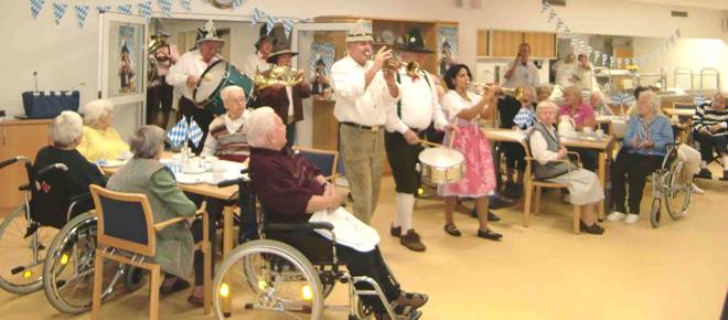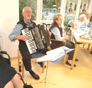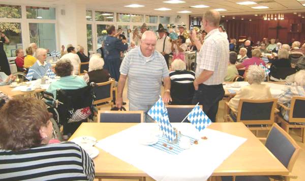 Bayrisch zünftig mit Krachledernen und Dirndl ging es hoch her beim Oktoberfest im Altenheim St. Peter