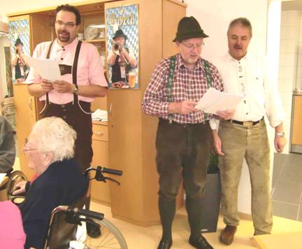 Schorsch, Werner und Manfred unterstützen die Altenheimbewohner alle 4 Wochen gemeinsam mit Werner Backhaus bei den Gesangstunden der Altenheimbewohner jeweils Freitags im Altenheim auf den Etagen 4 und 1.