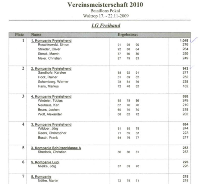 waren zufrieden mit ihren Schützen. Die I. Kompanie hatte richtig abgeräumt.