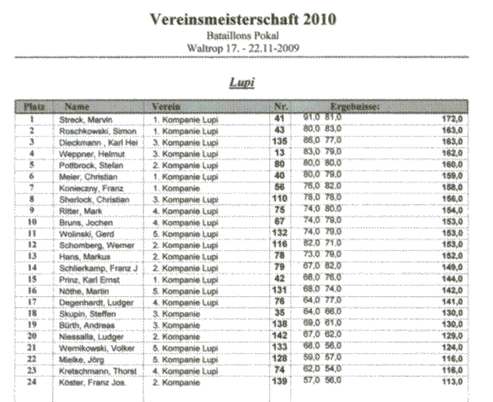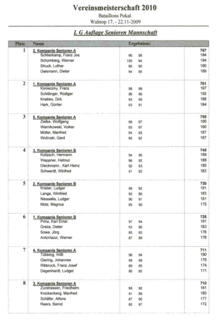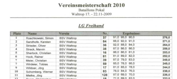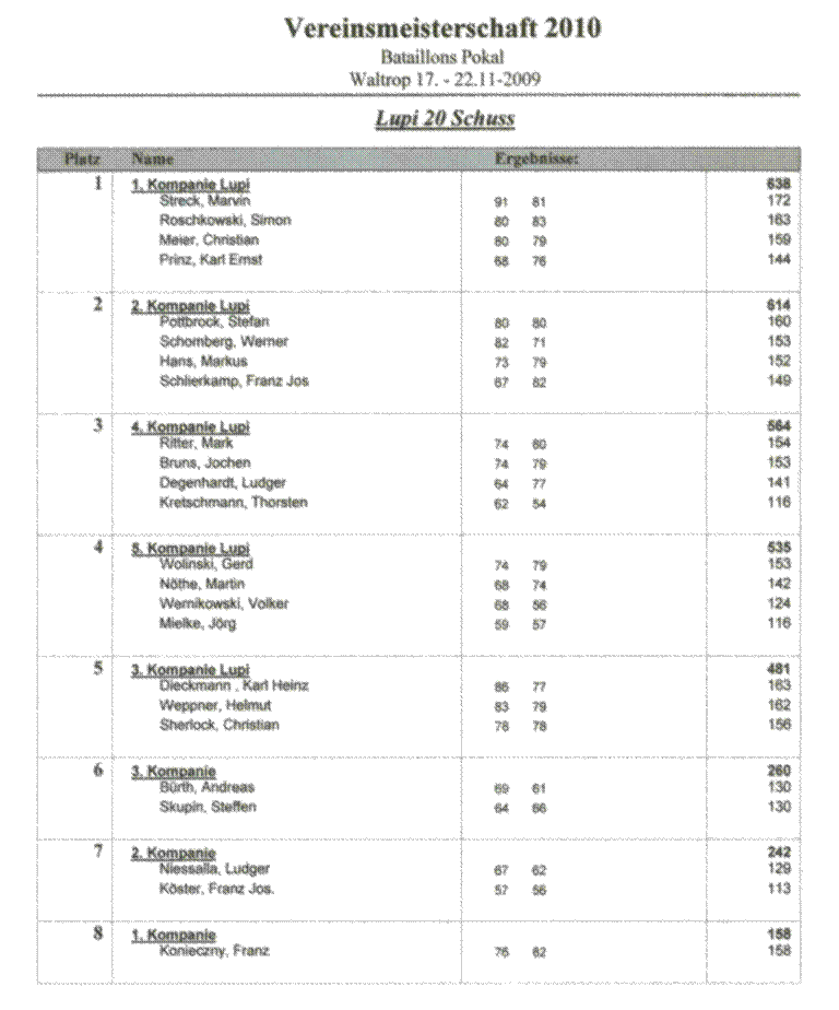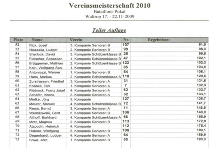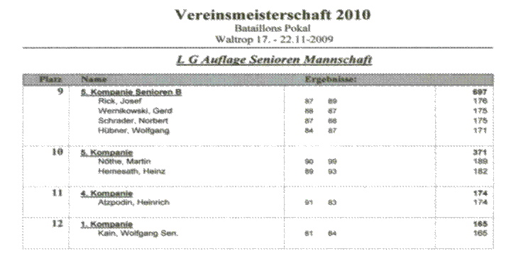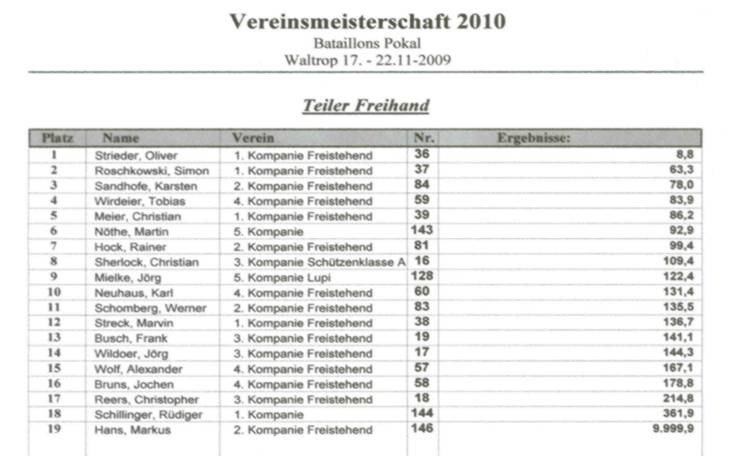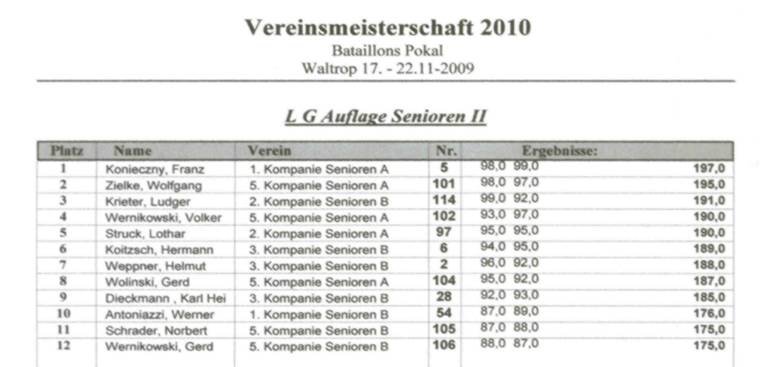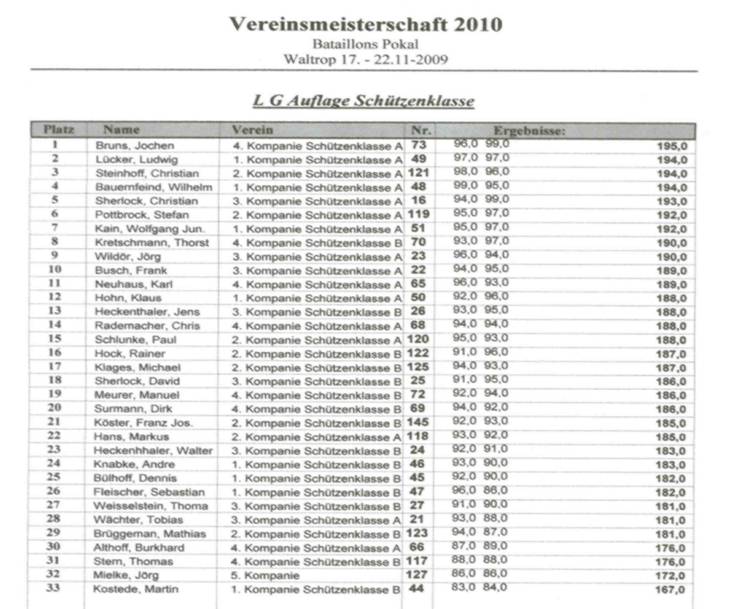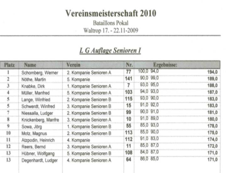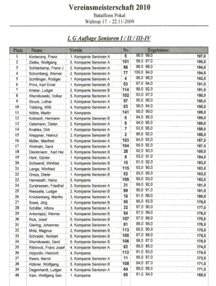 Rekordteilnahme, 146 Schützen nahmen an den Vereinsmeisterschaften 2010 teil. Vier Tage kämpften die Waltroper Schützen auf dem Schießstand unter der Stadthalle um jeden einzelnen Ring.