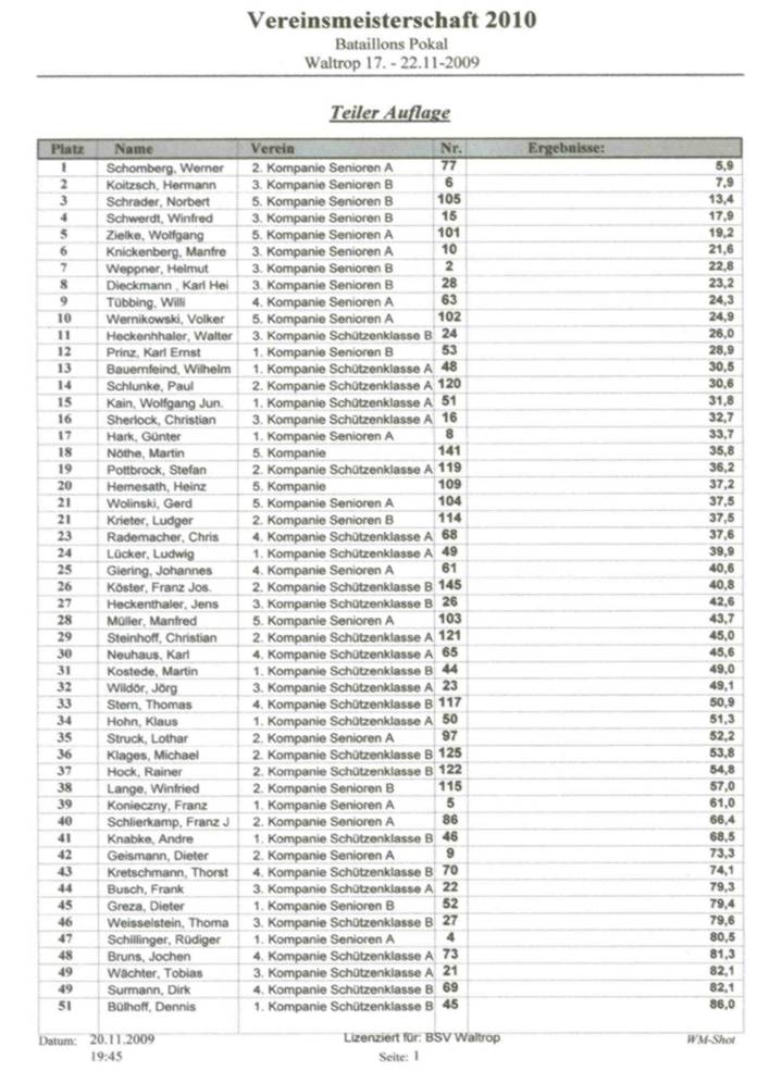 Vereinsmeisterschaften 2010 und Btl.-Pokal 17.-22.11.2009
