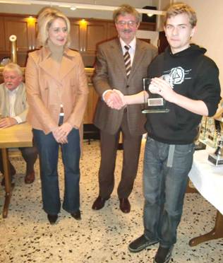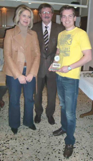 Jörg Patzek, Christian Meier mit dem Scheibenkönig Simon Roschkowski