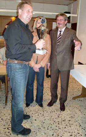 ![]() Schießwart der II. Kompanie, Franz-Josef Köster mit dem Siegerpokal |