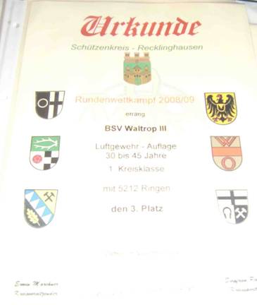 Zur Siegerehrung in der Stadthalle Waltrop am Freitag, 20.11.2009, konnte der Btl. Schießwart Alfons Schäfer 80 Teilnehmer begrüßen.