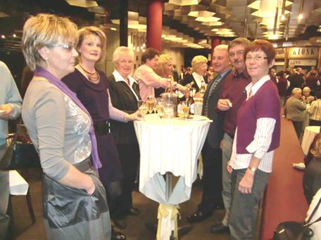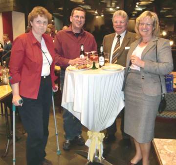 Beate, Vitus, Manfred und Bettina am Stehtisch mit Sekt, Bier und Bowle