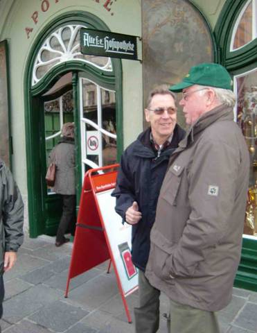 Karin und Josef vor dem Salzburger Dom. Schorsch, Gerda und Josef legen eine Glühweinpause ein.