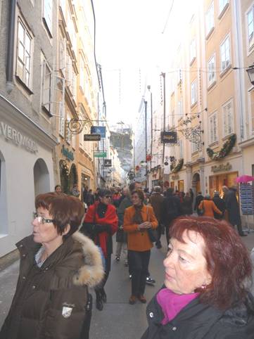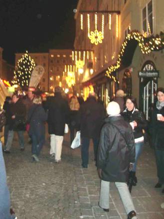 Samstagmorgen brachte uns unser Busfahrer Gerd nach Salzburg. Hier konnten wir ohne Führer durch die Stadt bummeln, auf den Weihnachtsmärkten Glühwein trinken oder in der Getreidegasse einkaufen gehen.