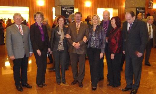Manfred, Ingrid, Monika, Manfred, Gaby, Wolfgang, Marianne und Theo im Foyer des