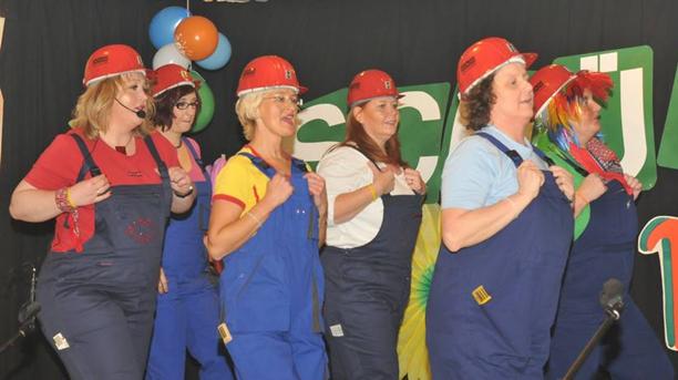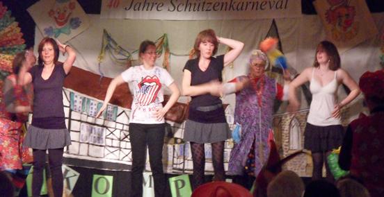 Marlene Hock, Antje Pottbrock, Andrea Motz, Claudia Brüggemann, Anja Ungewitter, Monika Hock, Beate Hans, Sabine Köster und Thekla Köster mit einer Tanzeinlage.