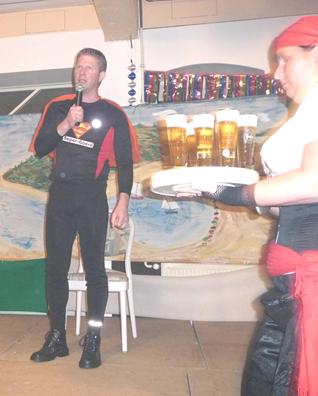Matthias Goer als Bad Man hatte mächtig Durst. Ein Tablett  Bier wurde sofort serviert.