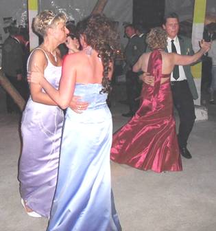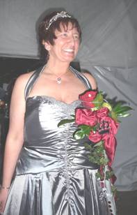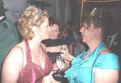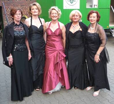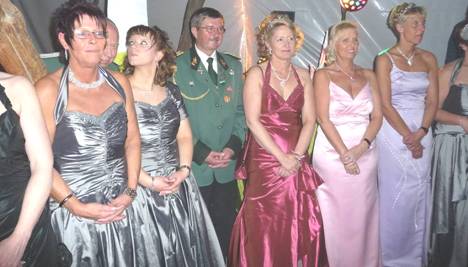 Königin Gaby mit den Hofdamen Monika, Ingrid, Bärbel und Marianne vor dem Einzug in die Festtenne