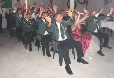 Gegen 22:30 Uhr marschierten 80 Waltroper Schützen mit ihren Damen ein und gratulierten ihrem König Manfred zum 62. Geburtstag