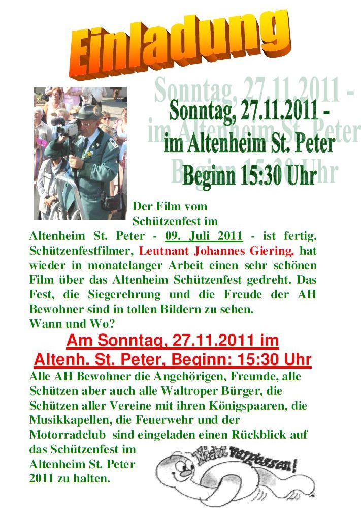 Aufführung des Films vom Schützenfest im Altenheim St. Peter