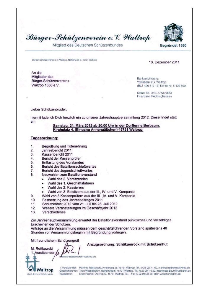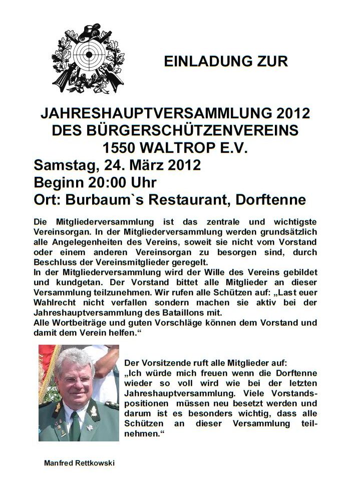 EINLADUNG JAHRESHAUPTVERSAMMLUNG 2012