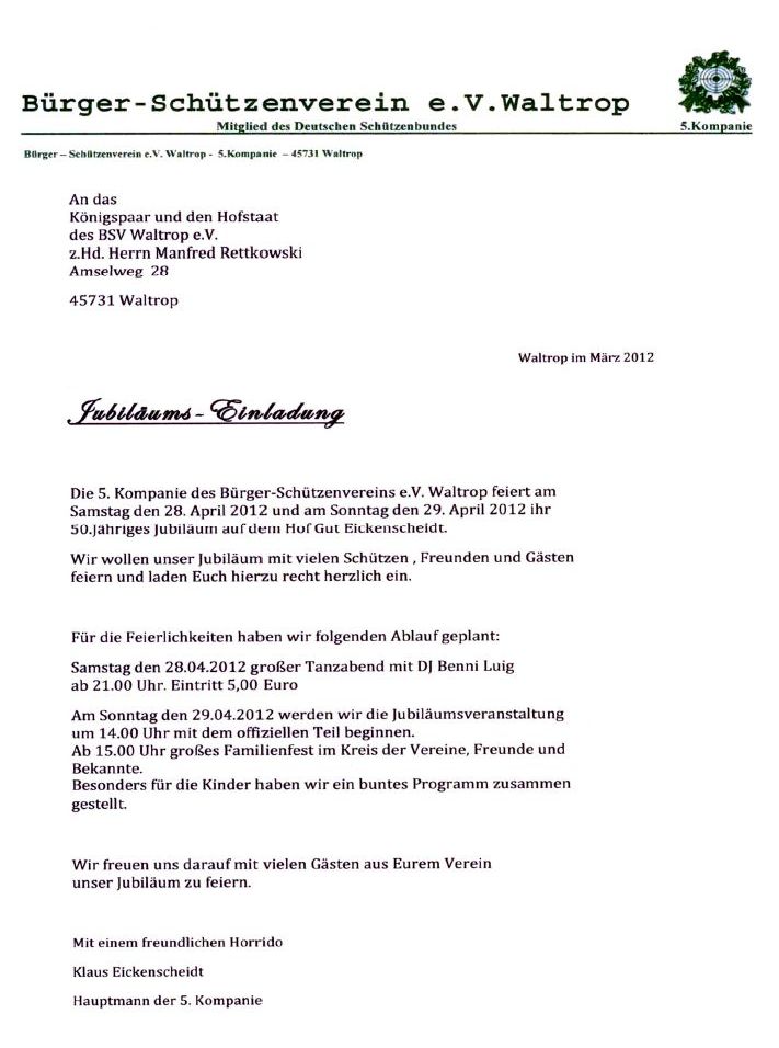 Glückwunsch 5. Kompanie ( + Einladung )