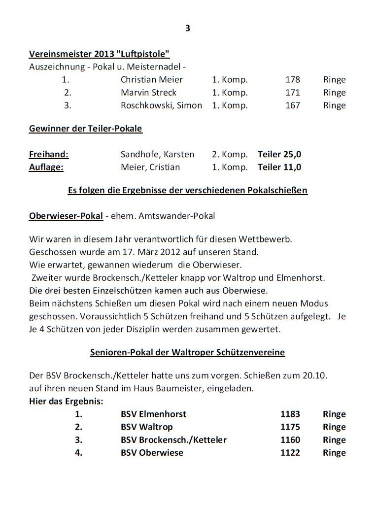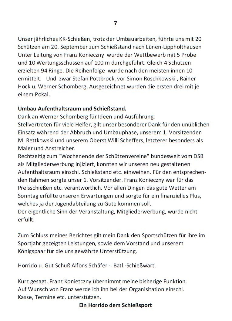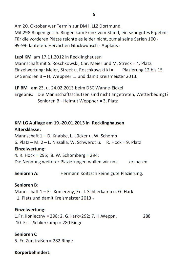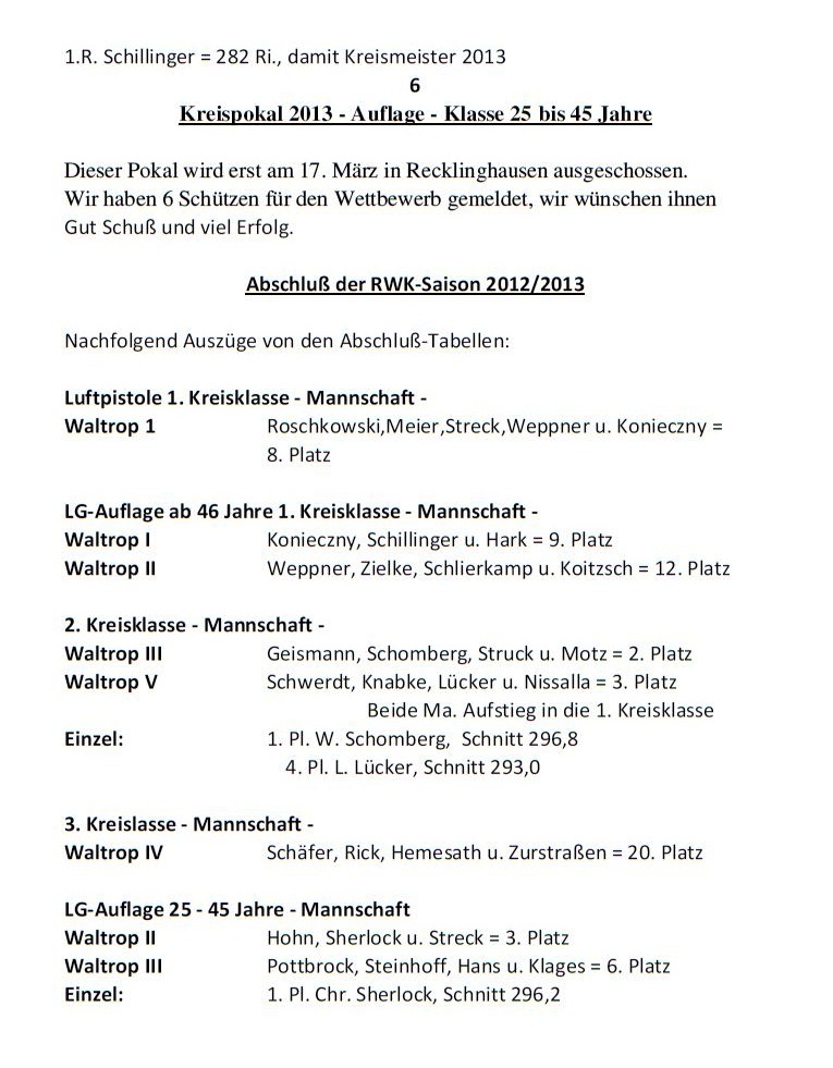Bericht des Batl.-Schießwartes über das Sportjahr 2012/2013