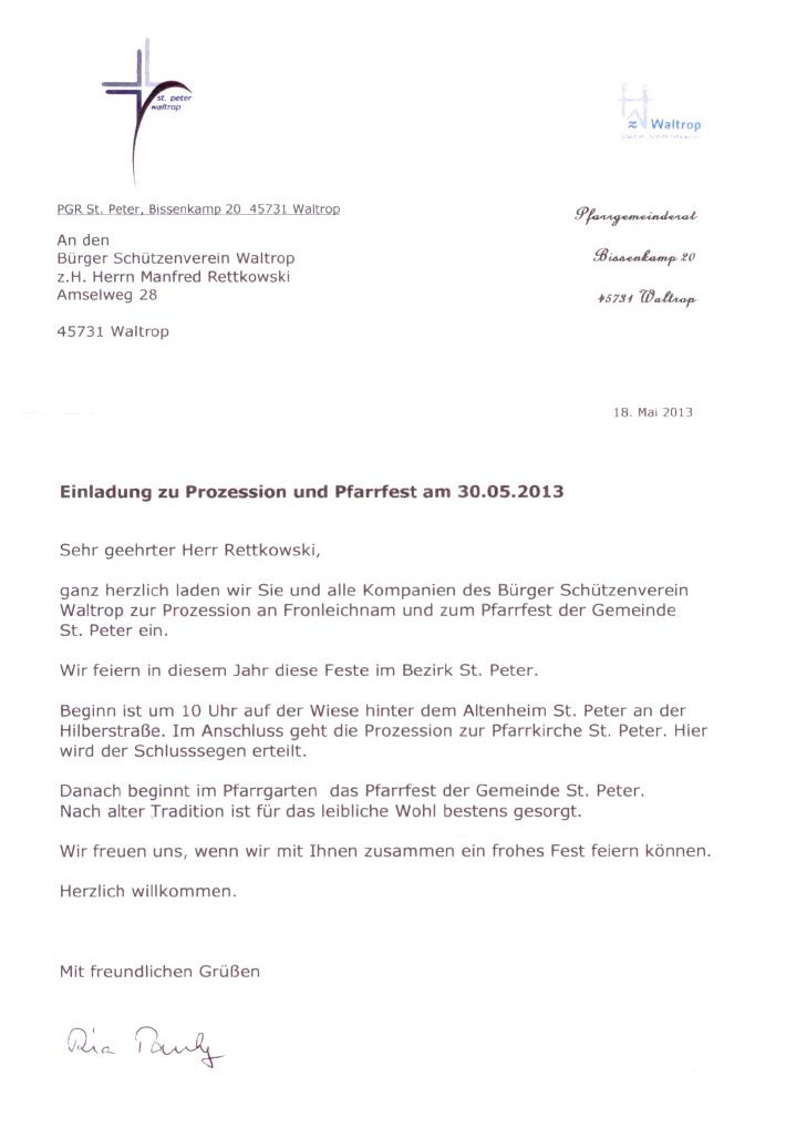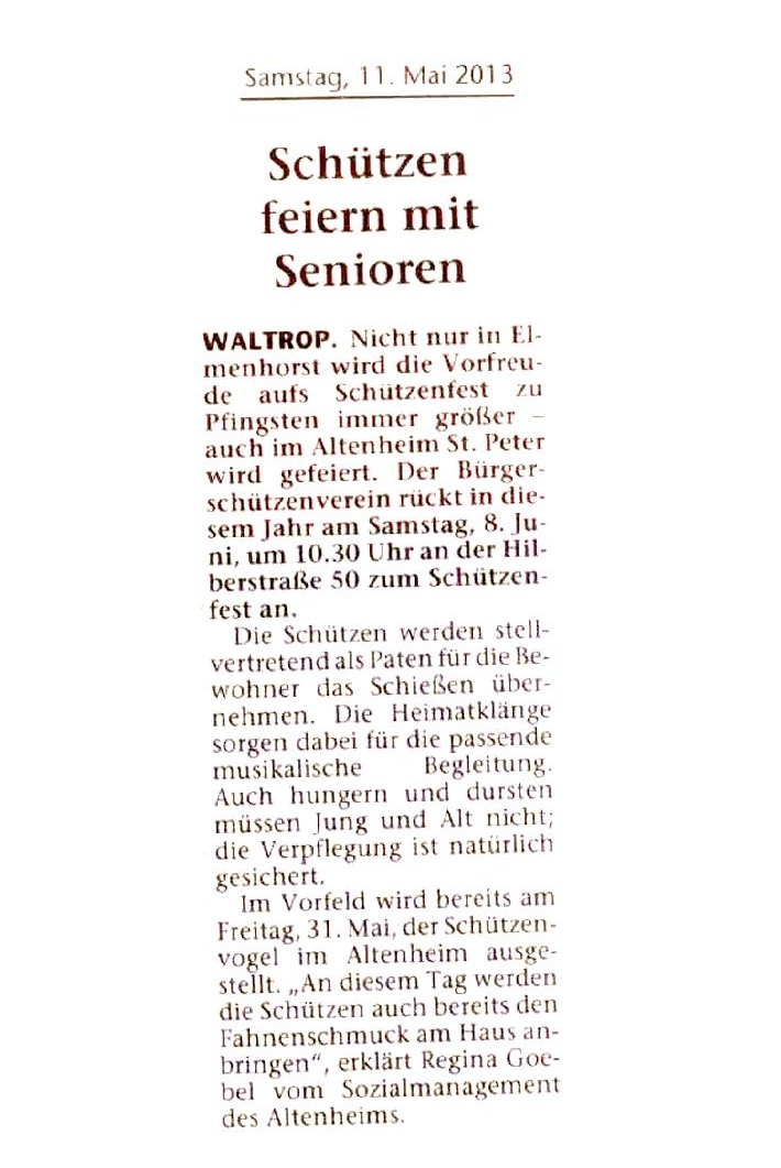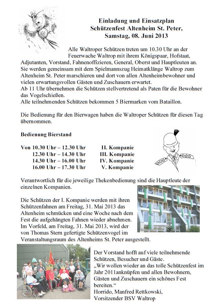Prozession Fronleichnam St. Peter – Schützefest im Altenheim – Einladung SF Oberwiese