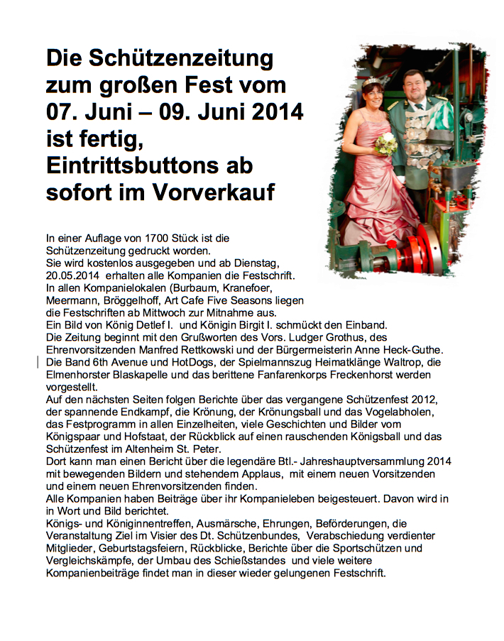 Die Zeitung zum Schützenfest 2014 ist da