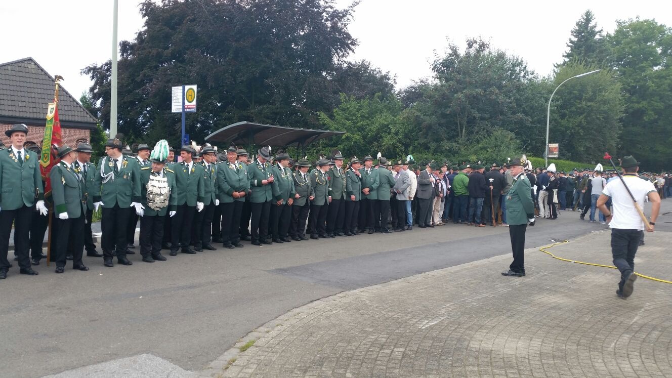 Die Befürchtungen, das es wieder zu einen Unwetter kommt nur weil unser „Sturmkönig“ unterwegs ist blieben Gott sei Dank unerfüllt. Angeführt von unserem Oberst Willi Scheffers und unserem Ehrenvorsitzenden Manfred Rettkowski ging es in Südlohn zunächst zum amtierenden König “ Juppi“ Josef Rathmer und seiner Königin Diana Höing. Nach einer kurzen Rast folgte dann der Rückmarsch ins Dorf und nach dreimaliger Abnahme der Parade und Umrundung des Dorfkernes ging es dann zurück zum Zelt.