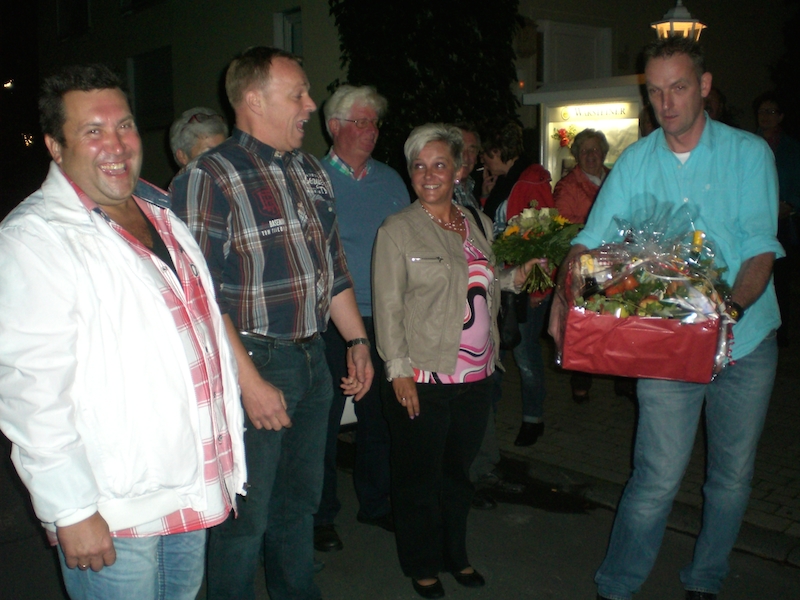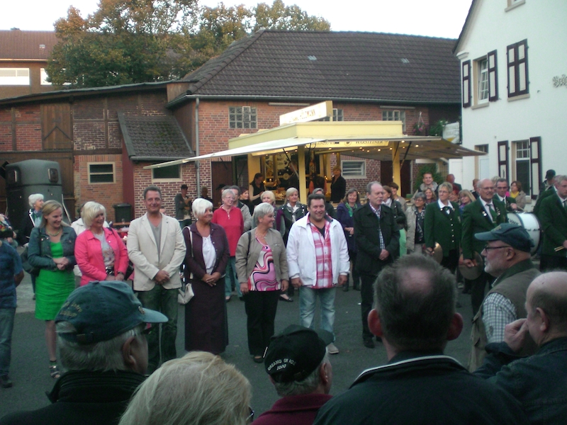 Nach einer vergünglichen und viel zu kurzen Zeit musste sich das Königspaar wieder verabschieden und machten sich auf den langen Weg zu Kranefoer, dem Kompanielokal der Vierten. Dort endete der Rundgang, der von keinem einzigen Regentropfen (!) gestört wurde, dann spät in der Nacht. König Roland bedankt sich noch einmal sehr für die herzlichen Empfänge bei den einzelnen Kompanien. Ein weiterer Dank gebührt dem Musikkorps Brambauer, das sehr kurzfristig den Marsch begleitete und überall für gute Stimmung sorgte.