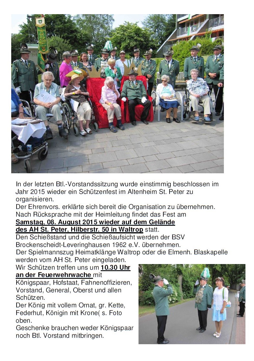 Schützenfest im Altenheim St. Peter am 08.08.2015