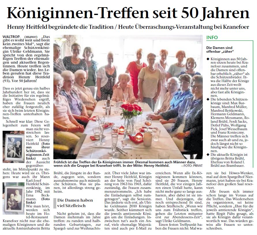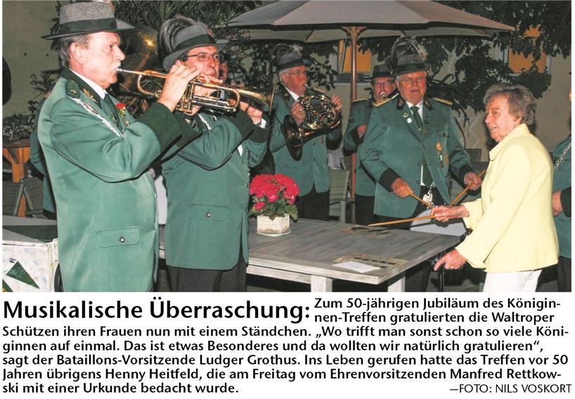 Das Ereignis wurde getoppt, als zur Freude aller Königinnen , Gründerin und jahrzehnte lange Organisatorin der Königinnerunde Henny Heitfeld vom