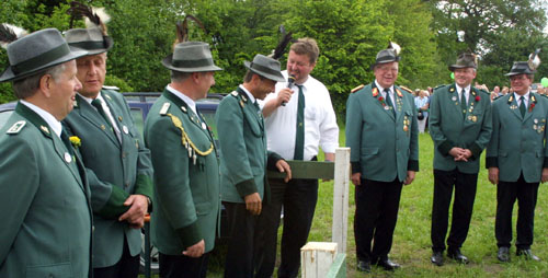 Nach einem spannenden Wettkampf konnte sich Josef Wesselbaum durchsetzen. Er nahm die Ehefrau des Vorsitzenden Manfred Rettkowski, Anneliese, zur Königin. Die Krönung im Festzelt übernahm Bürgermeister Willi Scheffers.